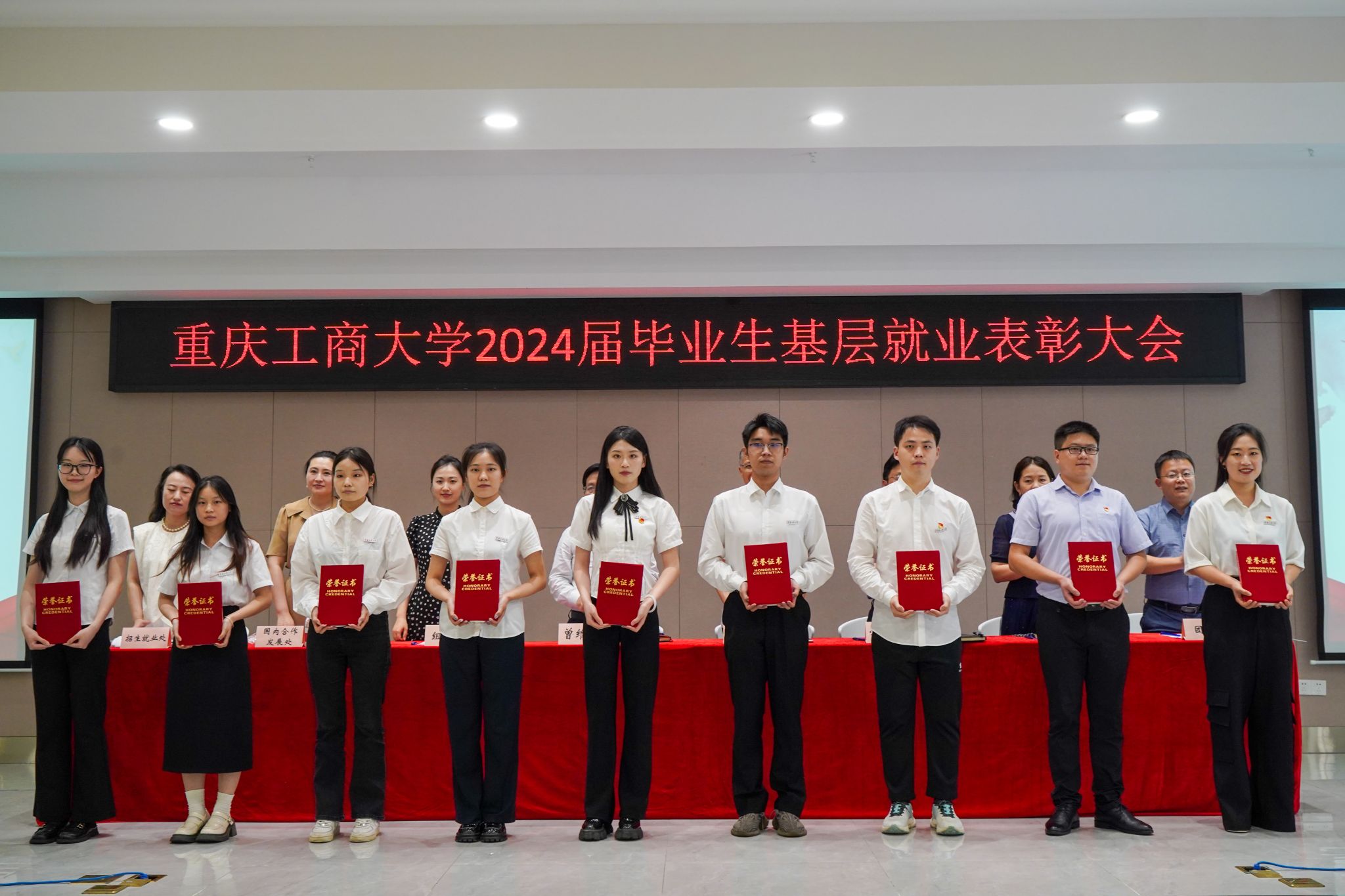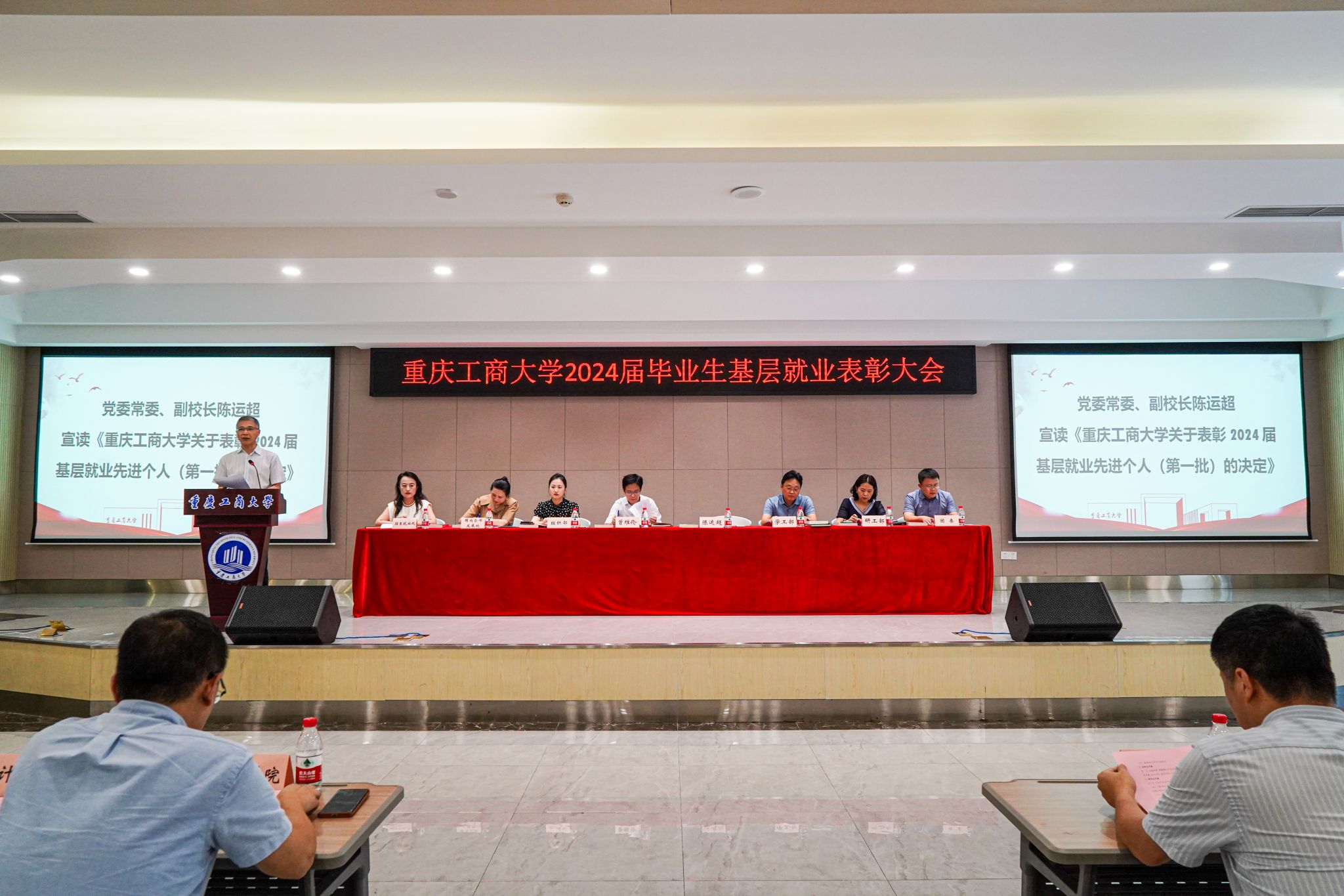 6月18日,我校在学生事务中心B101报告厅召开2024届毕业生基层就业表彰大会,学校党委书记曾维伦,党委常委、副校长陈运超出席会议,组织部、学工部、国内合作发展处、研工部、招生就业处、团委相关负责人,各学院书记、就业联络员、基层就业毕业生代表、在校生代表共计200余人参加会议。会议由招生就业处副处长周婷主持。