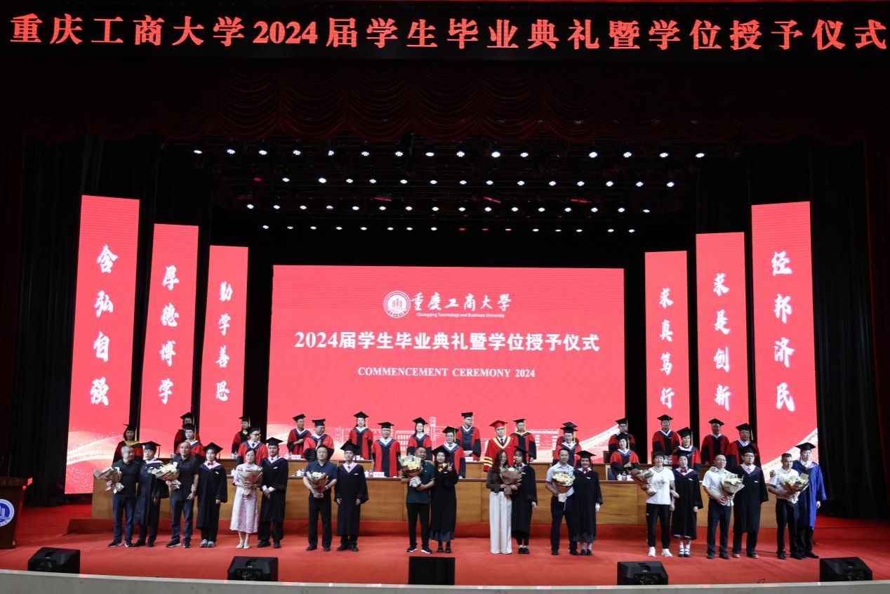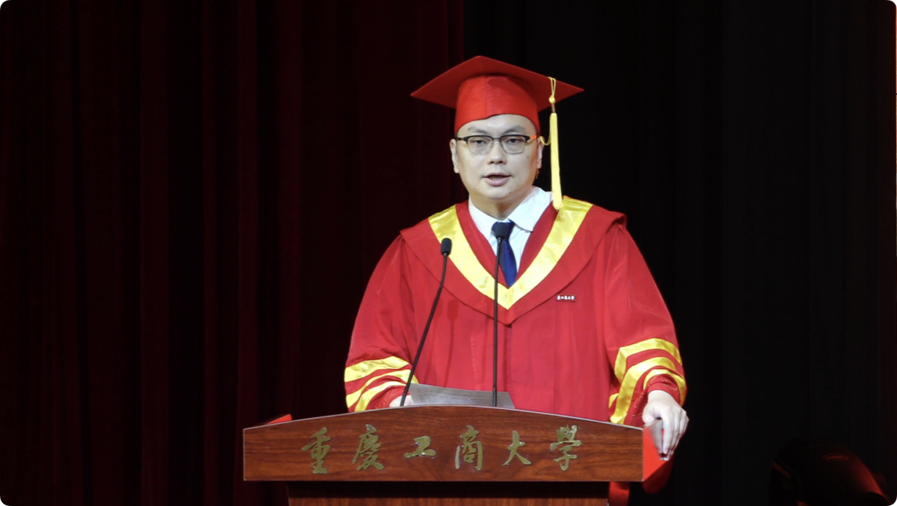 “作为重工商大校园最高‘级别’的学长学姐,你们突破自我,17%的同学选择在国内外高校继续深造,52%的同学留在成渝地区双城经济圈建设这片西部沃土,31%的同学奔赴西部陆海新通道、长江经济带、‘一带一路’,到祖国最需要的地方建功立业。”温涛骄傲地为毕业生们点赞!
