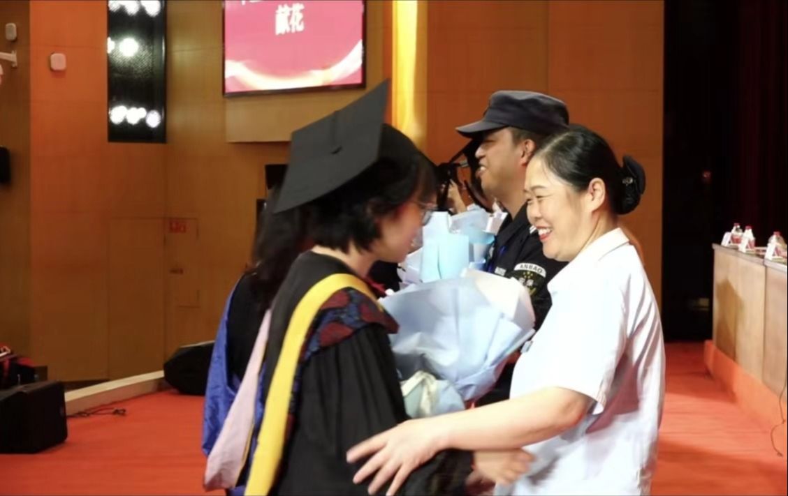 毕业生代表用鲜花和掌声表达心中对老师、辅导员、宿管阿姨和安保人员由衷的敬意和感谢,感谢他们的默默付出和陪伴,温暖了这几年的时光。