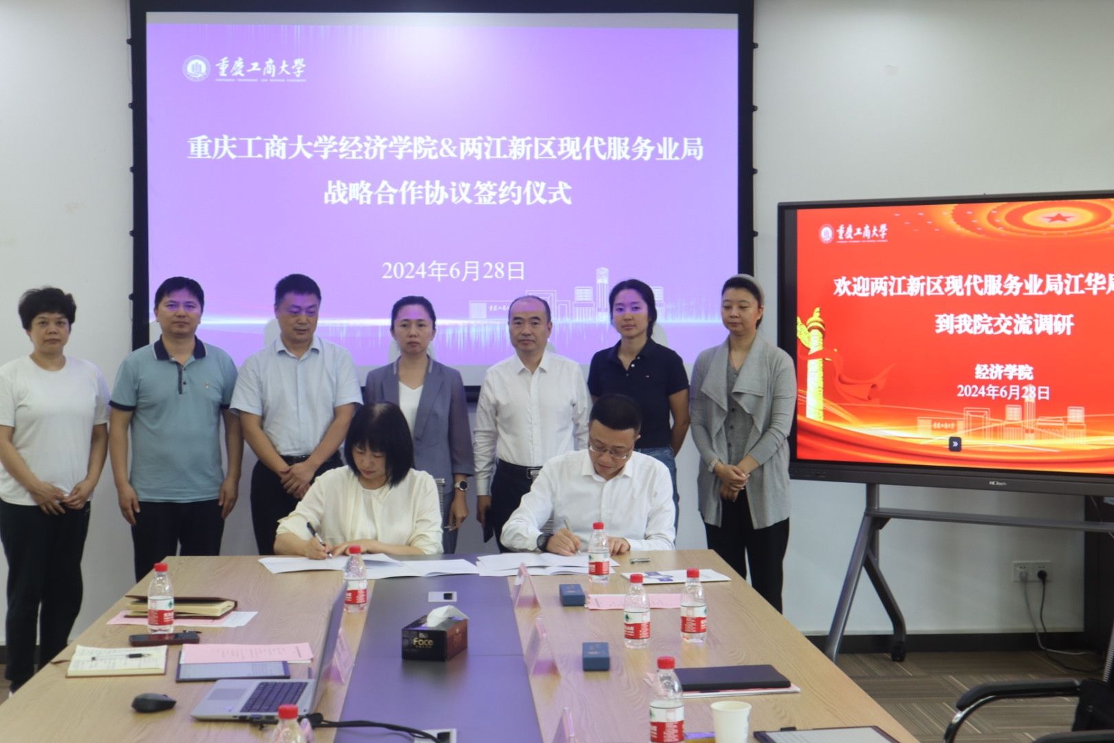 6月28日,重庆两江新区管委会现代服务业局局长江华一行到我校经济学院交流调研。我校党委常委、副校长李敬出席会议。会议由经济学院院长宋瑛主持。