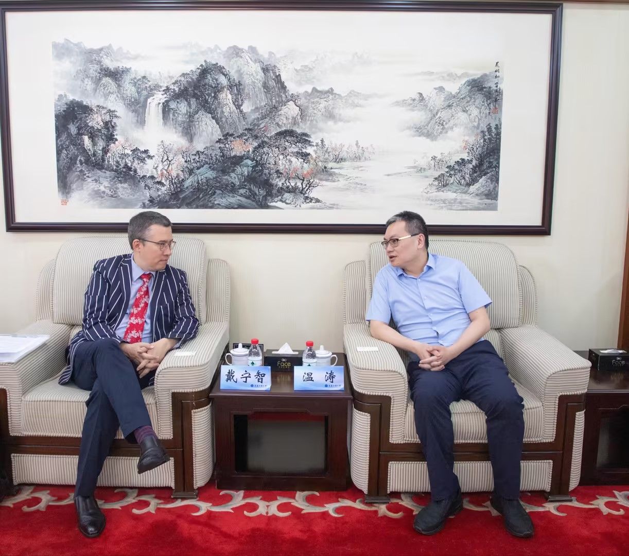 7月2日上午,法国驻成都总领事馆总领事戴宁智(Guillaume DELVALLEE)、科技与教育专员李森明(Samuel LIEGEOIS)、成都法国高等教育署负责人李奥力(Pierre-Olivier CAMARET),法国高科路桥大学商学院代表等一行访问我校。学校校长温涛、副校长柏群亲切会见了来宾,国际合作与交流处、国际商学院负责人一同出席。会议由国际合作与交流处处长张轶主持。