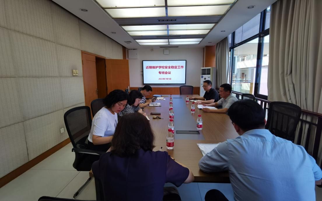 7月1日,学校在厚德楼4002会议室召开了校园安全工作专班会。会议由学校安稳办主任蒋年韬主持,相关职能部门负责人参加会议。