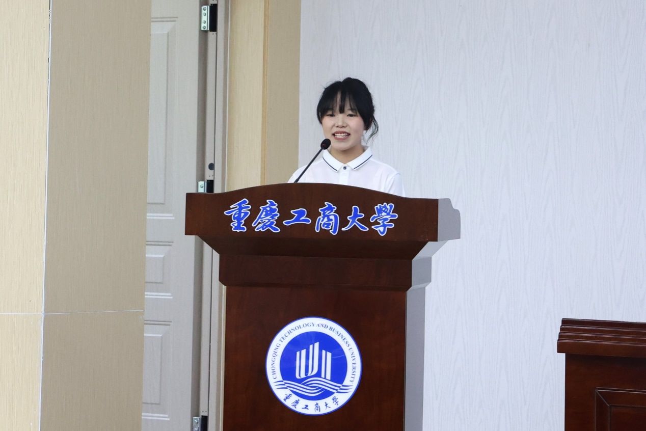 联合学士学位项目班重庆邮电大学新生代表张文睿发言。她表示,今后大家将不负学校和老师的期待,争做有理想、敢担当、能吃苦、肯奋斗的新时代好青年,在推进强国建设、民族复兴伟业中展现青春作为、彰显青春风采、贡献青春力量,奋力书写为中国式现代化挺膺担当的青春篇章。
