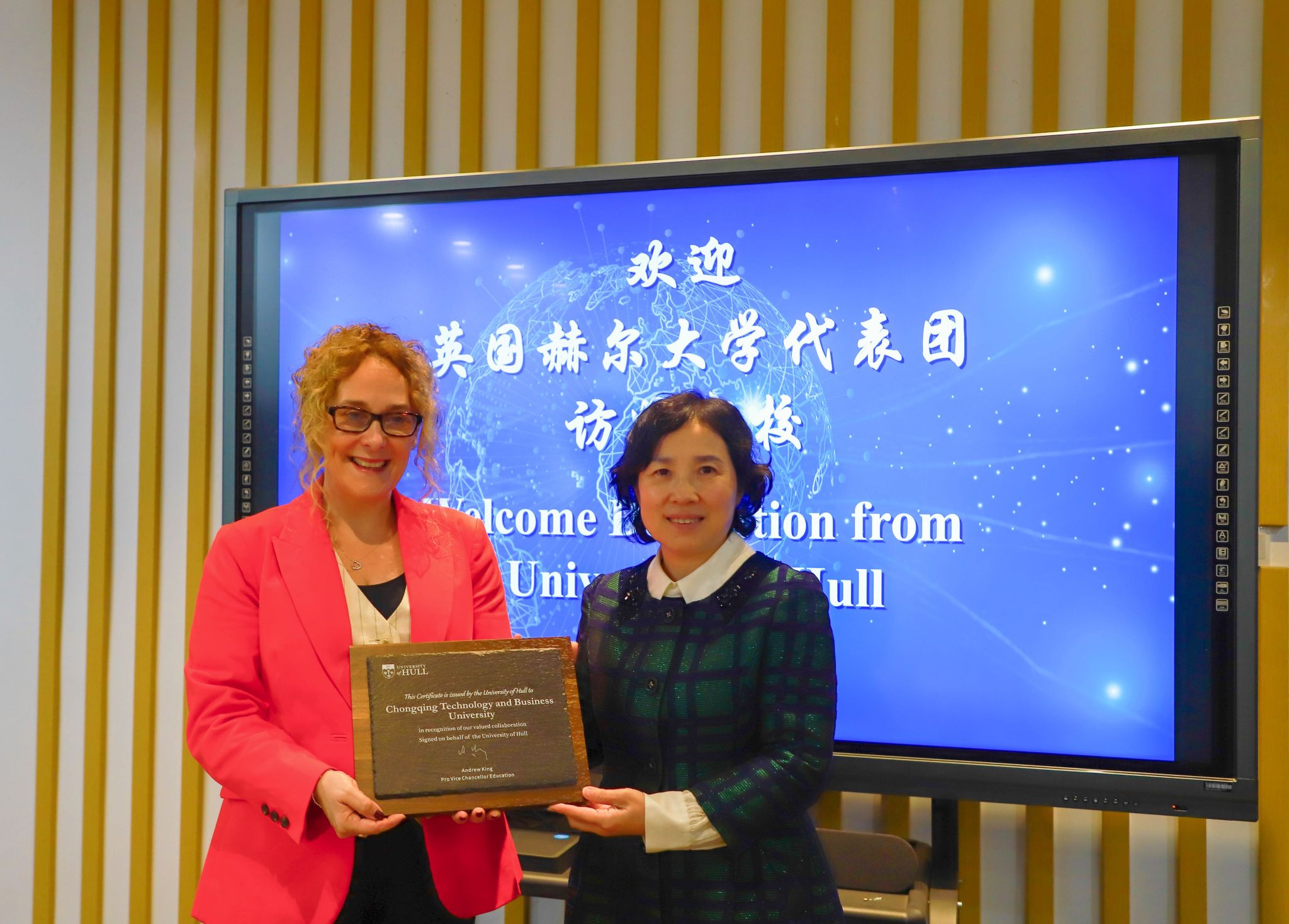 柏群对赫尔大学代表团一行来访表示了热烈的欢迎,并从历史沿革、学科建设、人才培养等方面介绍了我校的基本情况。柏群感谢赫尔大学在中外合作办学上对我校的支持,希望能探讨拓宽交流领域,全面深化合作。Peter Andrews分享了赫尔大学商学院教育理念、学科优势以及在国际人才培养的卓越成就,并诚挚邀请我校领导访问赫尔大学。