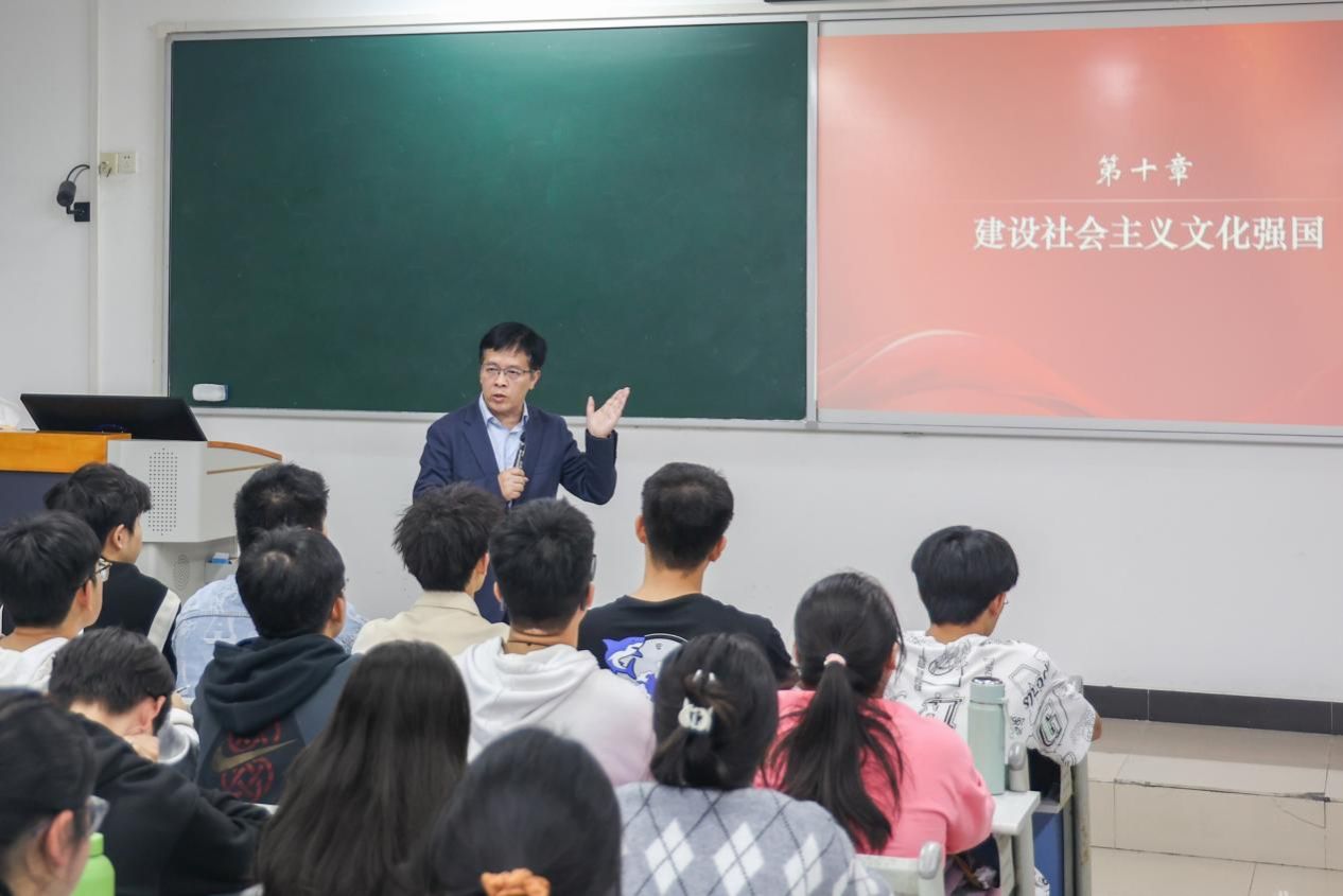 课堂上,曾维伦围绕“建设社会主义文化强国”这一主题,从“文化是民族生存和发展的重要力量”“建设具有强大凝聚力和引领力的社会主义意识形态”“以社会主义核心价值观引领文化建设”“铸就社会主义文化新辉煌”四个方面进行深入讲解。