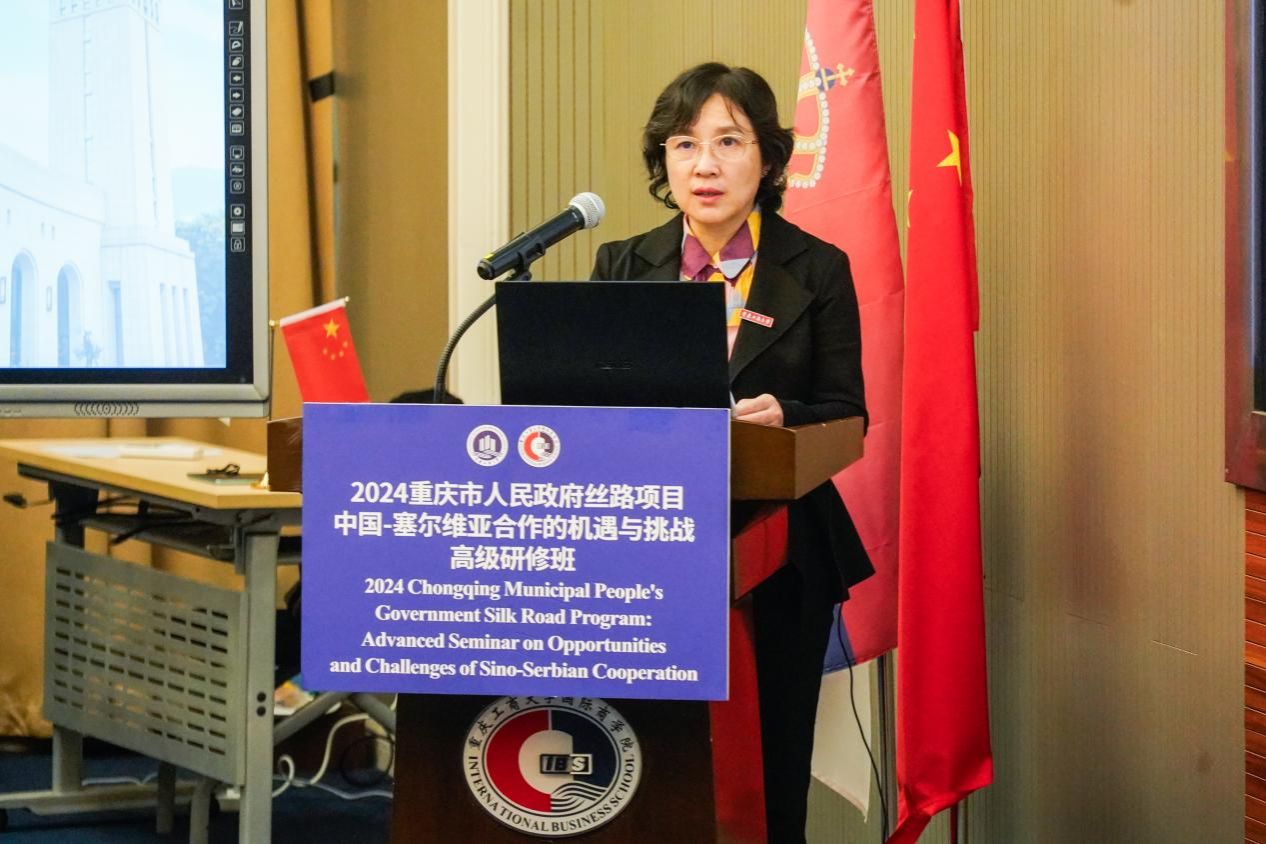 柏群代表学校在致辞中对研修班学员表示热烈欢迎,并介绍了学校的学科优势和办学特色。她谈到,此次研修包括分享中国以及重庆市在经济发展、数字化转型、新质生产力、“一带一路”国家互联互通建设等方面的实践经验,同时实地考察中国企业、体验中国传统文化等内容。柏群希望本次研修能够帮助学员更好地了解中国,了解重庆,结交到重庆社会各界的朋友,进一步增进友谊,拓展合作领域,共同书写中塞友好新篇章。