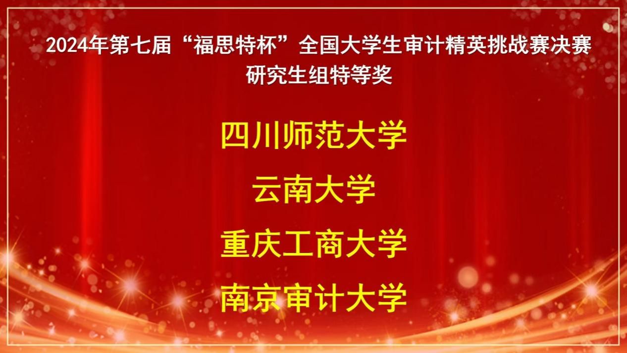 11月30日,第七届“福思特杯”全国大学生审计精英挑战赛在南京审计大学举办。我校会计学院审计专硕2023级万文萱、张新月、2024级杨瑞同学组成的万搏网页版_万搏(中国)官方在线登录代表队在指导老师王杏芬、李晓羽和钟廷勇的指导下,经过激烈角逐获得全国特等奖的优异成绩。该项赛事创办于2018年,是江苏教育厅认定的省级赛事,由中国审计学会审计教育分会主办、南京审计大学政府审计学院承办,广州市福思特科技有限公司提供技术支持。