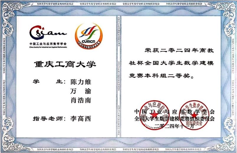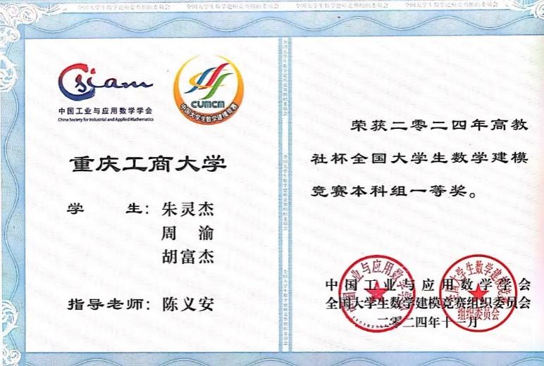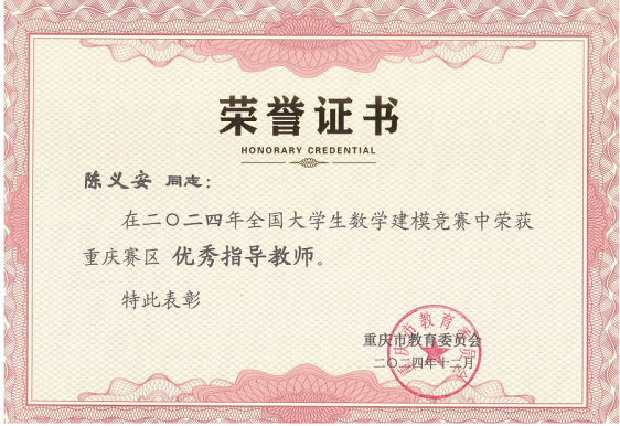 经过激烈的角逐,我校代表队获本科组全国一等奖1项(全市7个)、二等奖2项,获重庆市一等奖8项、二等奖19项。这是学校近五年在该赛事上首次获得全国一等奖。数学与统计学院院长陈义安获评重庆赛区优秀教练员,数学与统计学院袁德美教授获评重庆赛区优秀组织工作者。
