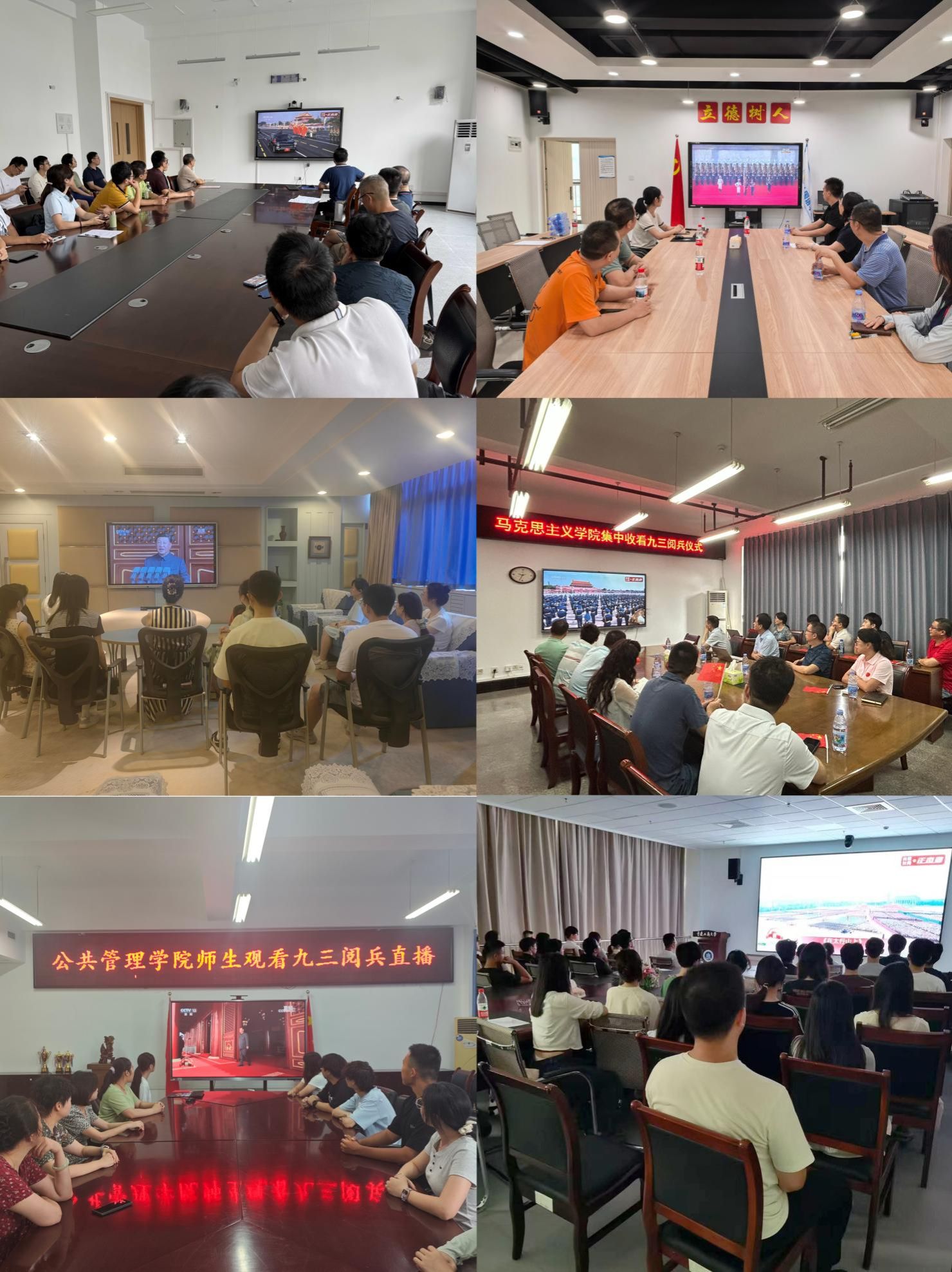 在观看直播现场,师生们聚精会神、热情高涨,不时响起热烈的掌声。大家倍感振奋,纷纷表示要铭记历史,在实践中传承弘扬伟大抗战精神,担负好时代责任和历史使命,踔厉奋发、勇毅前行,为全面建设社会主义现代化国家、全面推进中华民族伟大复兴而团结奋斗。