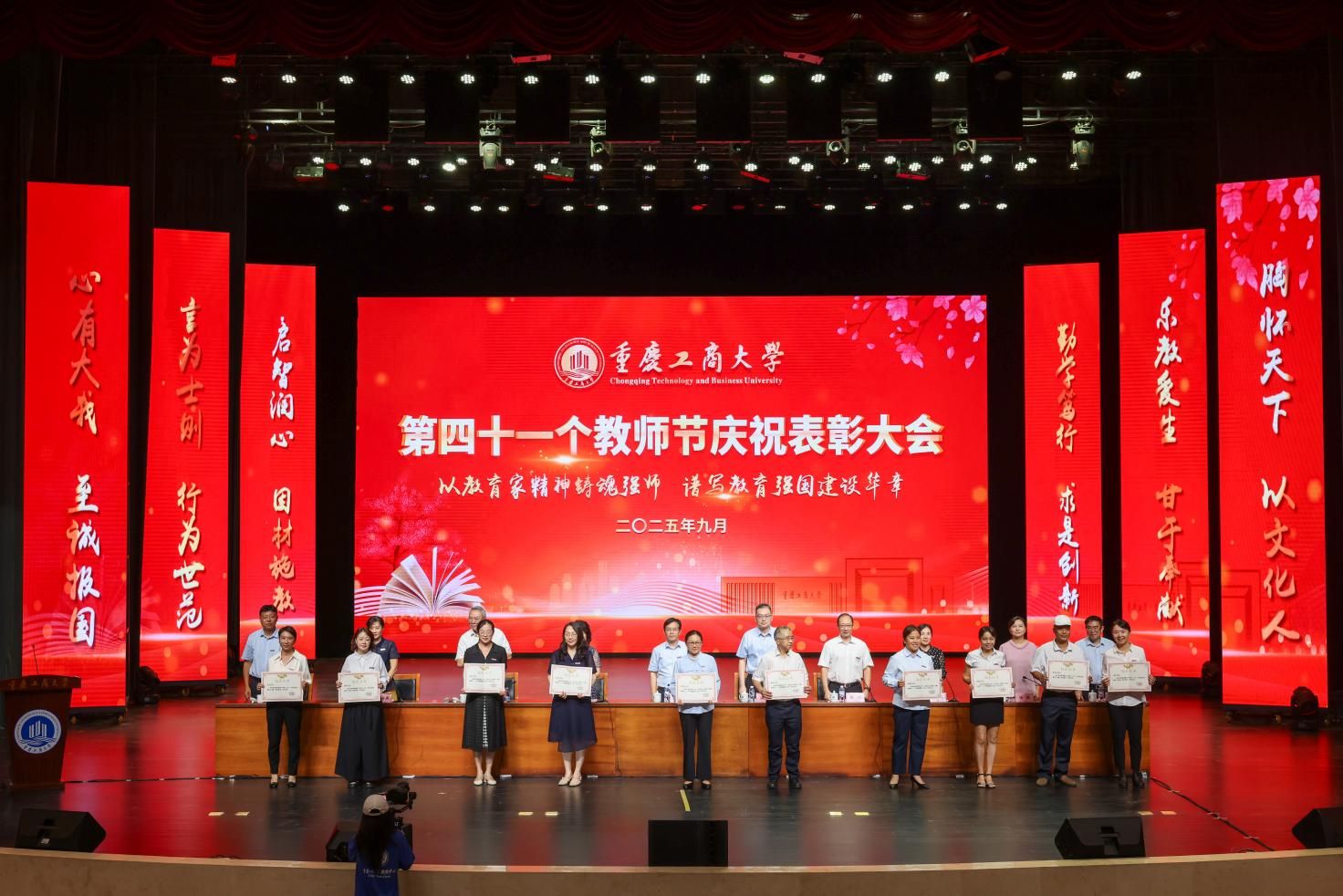 大会为第四批重庆市学术技术带头人及后备人选、2025年巴渝学者计划人选颁发了证书;表彰了第三批师德先进个人,2024-2025学年优秀教师、优秀教育工作者,第五届重庆市高校教师教学创新大赛、第四届川渝青年教师风采大赛、万搏网页版_万搏(中国)官方在线登录第六届教师教学奖获奖人员,2024-2025学年优秀辅导员、2023-2025学年标兵辅导员,并为满30年教龄的教师和从事学校工作满30年的教职工颁发纪念证书。