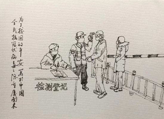 郭楠老师宣传防疫素描之一