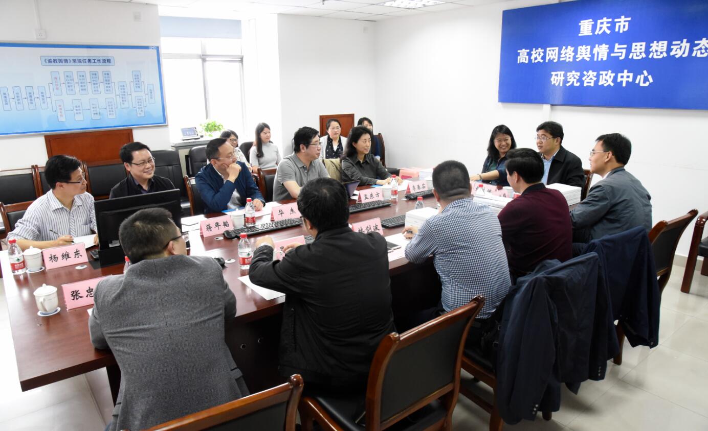 5月8日下午,中央网信办网络社会工作局副局长孙爱萍、教育部思政司副司长张文斌、中央网信办网络社会工作局网络文化处处长张光耀、教育部思政司思想教育与网络处处长吕治国在市委网信办评论社会处处长林剑波及市委教育工委、市教委宣教处处长吴边的陪同下来我校重庆市高校网络舆情与思想动态研究咨政中心(以下简称“中心”)调研。