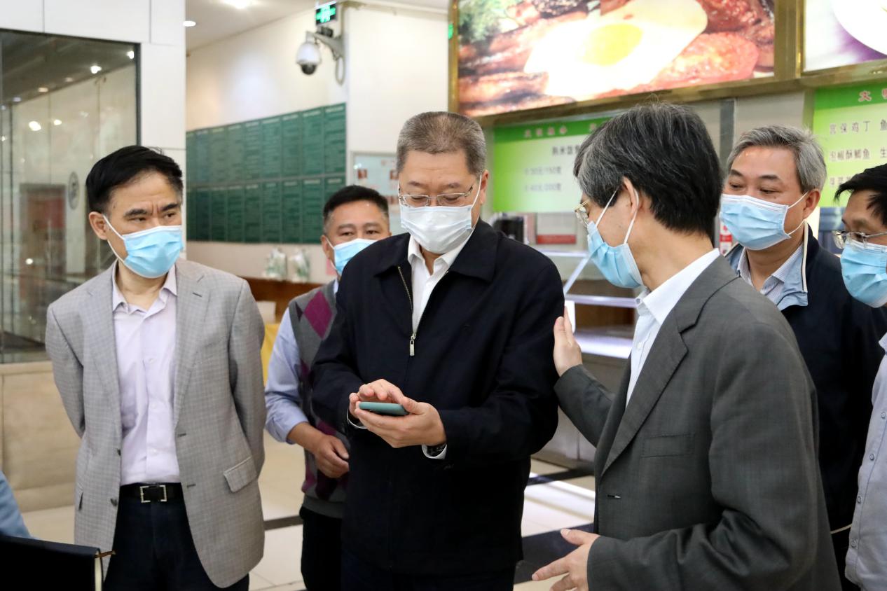 4月29日,市委教育工委书记、市教委主任黄政一行来到万搏网页版_万搏(中国)官方在线登录检查疫情防控及开学前准备工作,黄政走进学校食堂,了解食堂取餐用餐、错峰就餐等情况,检查饭菜质量及食品卫生;检查学校开学前防控物资储备和设置隔离点情况,在学校健康观察点向医务人员表示感谢。黄政要求,一定要把疫情防控工作作为当前重中之重的任务,切实保障师生员工的身体健康和生命安全,从严从实从细从快落实好各项防控措施,坚决打赢高校开学复课这场疫情防控阻击战。