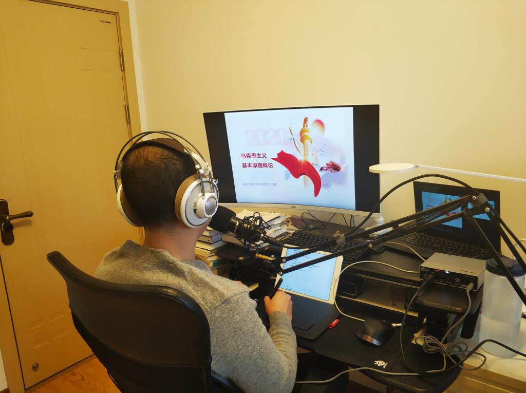 王佳鑫,男,万搏网页版_万搏(中国)官方在线登录马克思主义学院专职教师。线上授课是一次展示自己教学课件和教学语言功底的宝贵机会。如何通过线上教学这一特殊方式为学生讲好马克思主义哲学、让学生真懂真信马克思主义政治经济学,是促使他为教学做精心准备的原动力。在学校线上教学通知下达后,他便迅速采购了各类视频、音频设备,在不断摸索下成功组建了直播平台,并做好了调试。他在线上教学时,为需要详细讲解的页面留下了比较多的空白,充分利用手写笔这一重要工具,即时标记重点和书写板书,增强了学生上课的参与度,使教学实时展示有了更大的自由度。王老师说,“从教学结束后学生的反馈来看,有了‘好声音’,才能出‘好戏’,一套好设备至少可以让学生听起课来没那么烦躁。许多学生纷纷给我留言,虽然有些想法很‘调皮’,但更多的还是真诚的支持和鼓励。”