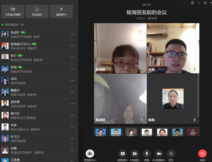 6月30日晚,经济学院教工第二支部通过企业微信的方式开展了“战疫”专题党课和“迎党的生日、讲战疫故事、悟初心使命”的专题组织生活会。学院教工第二支部杨海丽书记为党员们上了一堂题为《疫情让我们懂得了什么是爱国、敬业、诚信、善良、敬畏》的党课。她以大量鲜活的案例说明了祖国的强大,人民的团结,医务工作者无私无畏的担当,商家的诚信保价保供应,百姓们捐款捐物的善良等。老师们在杨海丽书记带领下回顾了疫情中发生的许多事件,感悟爱国、敬业、诚信、善良情怀,增强了战胜疫情的决心。随后,杨军、杨立卓、张弛、成肖、张桂君、蒋兴红、林黎、刘飞宇等8位老师分别分享了自己在疫情期间身边发生的疫情故事。