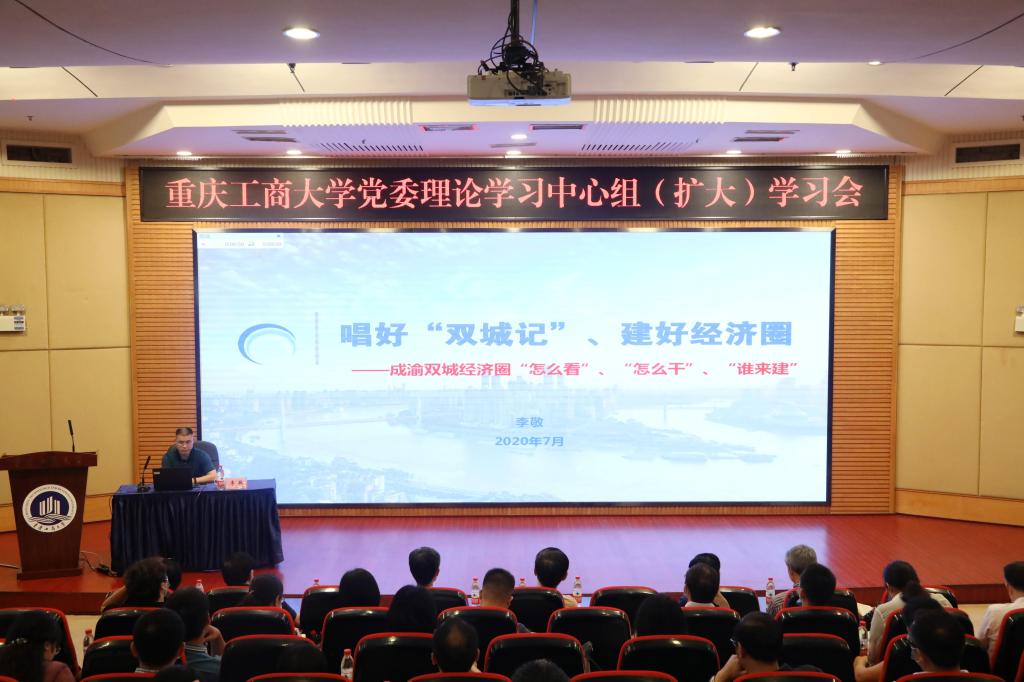 7月2日下午,我校在博智楼7200学术报告厅召开党委理论学习中心组(扩大)学习会。我校经济学院院长李敬教授作了《唱好“双城记”、建好经济圈——成渝双城经济圈“怎么看”、“怎么干”、“谁来建”》的辅导报告,全体校领导、中层干部参加了会议,会议由校党委常委、宣传部部长华杰主持。
