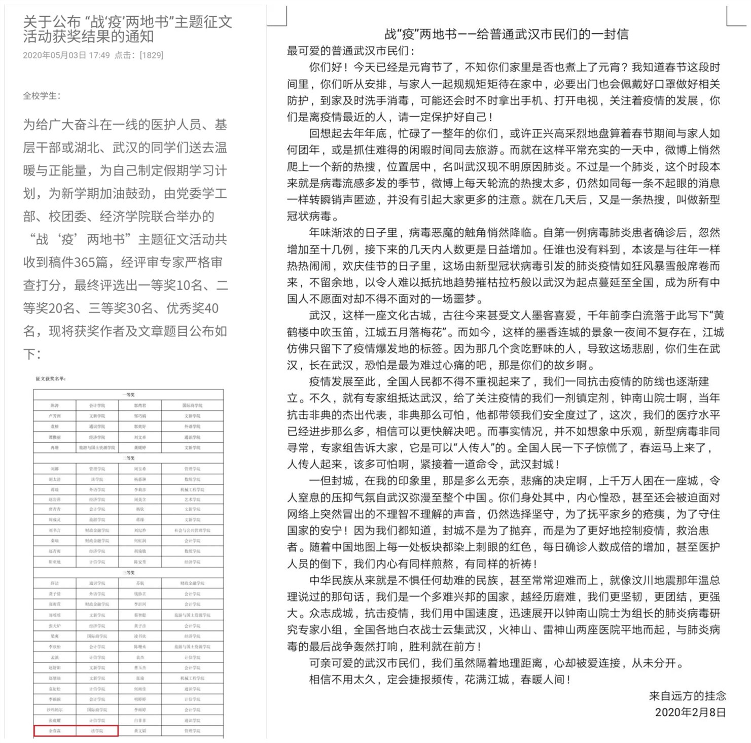 实,要实践出真知。 “三下乡”得以让青年一代走入群众,真正了解群众最迫切的需求与愿望,将自身所学有目的有计划地予以运用。实,要志存高远,脚踏实地。青年人身强力壮,精力充沛,就应当要有崇高的志向。实,要实实在在到人民最需要的地方去。返乡期间,他虽然没能作为志愿者加入一线,但仍持续关注疫情防控情况。并借此机会认真学习了习近平新时代中国特色社会主义思想,进一步提升自己的思想觉悟,参加了“两地书”的征文比赛获得三等奖。