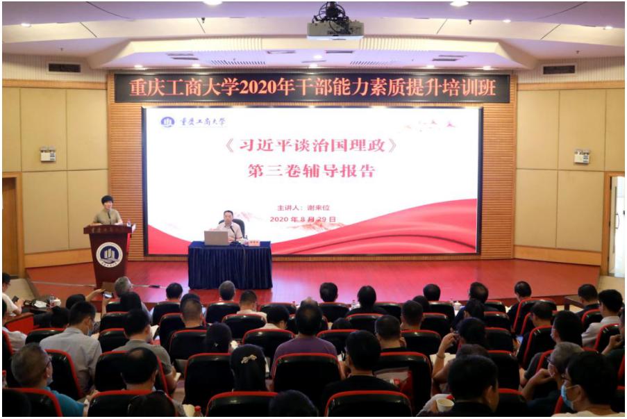 8月29日下午,我校继续举行干部能力素质提升培训暨党委理论学习中心组(扩大)学习会,会议邀请到重庆市委党校谢来位教授作《习近平谈治国理政》第三卷辅导报告。校领导、中层干部、专职组织员、职能部门、教辅单位正科级干部参加了培训。培训会由校党委副书记宋豫主持。