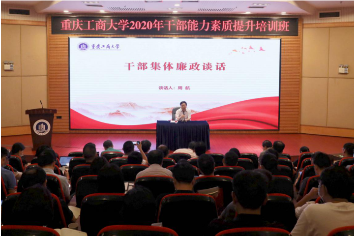 8月31日上午,学校在博智楼7200学术报告厅继续举行干部能力素质提升培训。校党委常委、纪委书记、市监委驻万搏网页版_万搏(中国)官方在线登录监察专员周航作了干部集体廉政谈话。校党委书记李志雄作了干部集体任职谈话。培训班全体成员参加了谈话。会议由校党委副书记宋豫主持。
