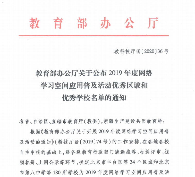 近日,教育部办公厅公布2019年度网络学习空间应用普及互动优秀学校名单,我校顺利通过专家评审与网络答辩,获得教育部“2019年度网络学习空间应用普及互动优秀学校”称号,充分展示了我校以网络学习空间应用带动信息化教学模式创新的水平,有助于推动我校“互联网+”条件下教育改革创新发展。