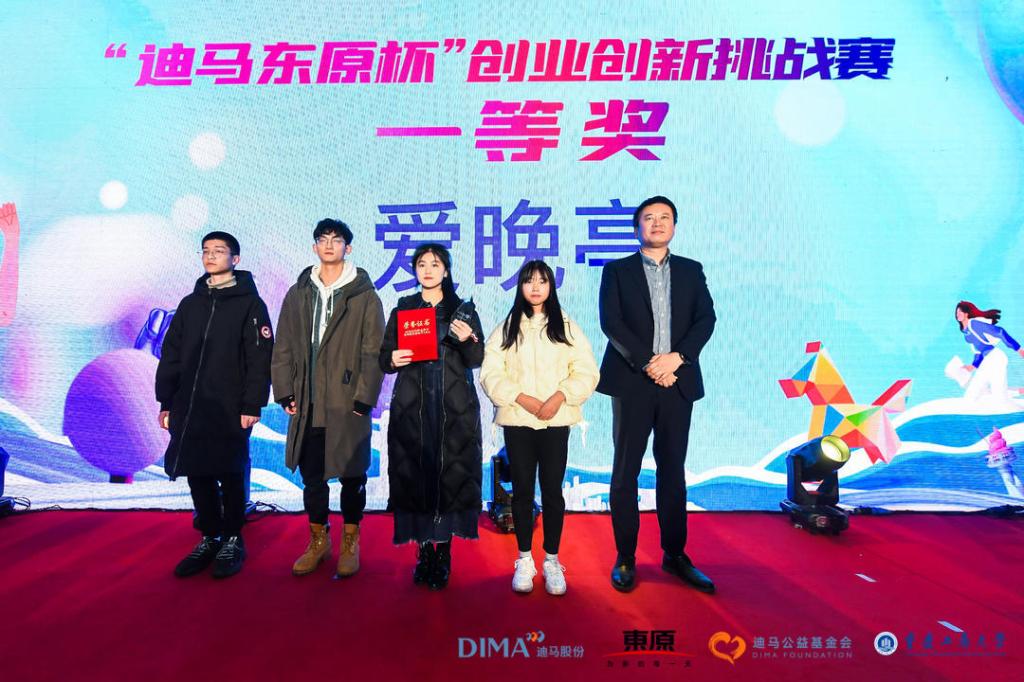 活动第二阶段为“迪马东原杯”创业创新挑战赛颁奖。经过创意纷呈的156支队伍激烈角逐而胜出的9支队伍获得本次创业创新挑战赛大奖,其中一等奖获奖团队“爱晚亭”现场展示的“迪马常青园养老计划”,契合当前社会现实和产业缺口而提出了“智能+时尚”养老模式,获得现场同学的阵阵掌声。王磊在活动总结中表示,在参赛作品上看到了出色的团队协作能力和解决问题的创新能力,并希望更多具备创新力的工商学子加入东原,开创不一样的未来。