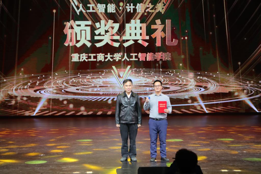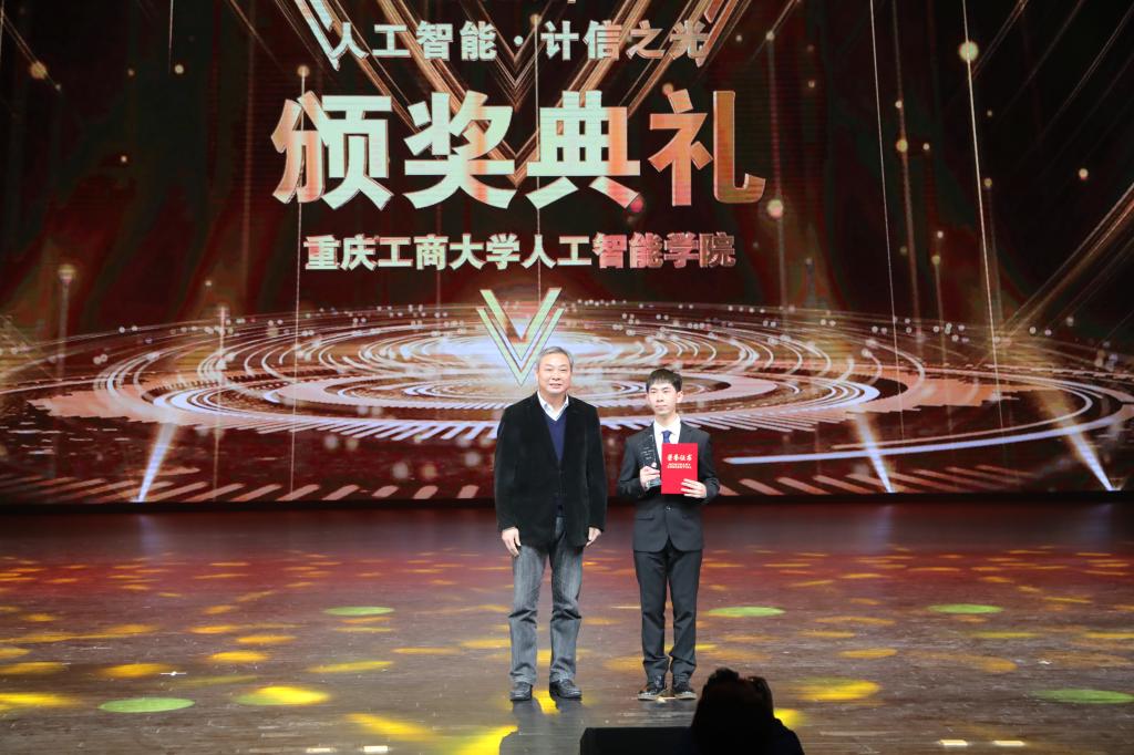 为选树优秀典型好榜样,激发向上向善正能量,表彰在不同领域表现突出的人工智能学院在校学子和优秀校友,展现学子和校友风采,12月25日晚,2020年“人工智能·计信之光”颁奖典礼暨迎新晚会在新图书馆剧场隆重举行。校党委书记李志雄,党委副书记宋豫,副校长李国军,党政办公室主任罗勇,党委组织部副部长、机关党委书记龚顺清,教务处处长骆东奇,学工部副部长陈亚惠,校团委副书记胡婧婷,人工智能学院班子成员、教师代表、学生代表及校友代表等400多人参加了此次活动。1.5万余名师生校友等通过现场直播的方式观看了颁奖典礼暨迎新晚会。
