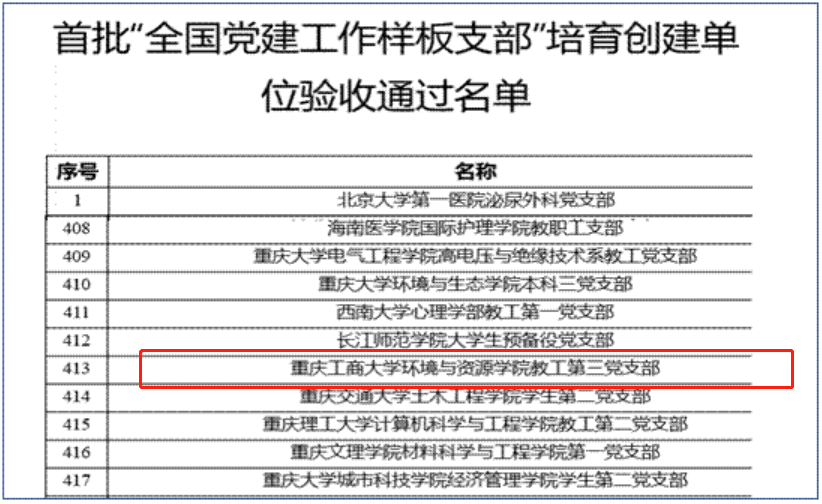 近日,教育部公布首批全国党建工作示范高校、标杆院系、样板支部培育创建单位验收通过名单,共有10个高校党委、98个院系党组织、551个党支部通过验收。我校环境与资源学院教工第三党支部通过首批“全国党建工作样板支部”培育创建单位验收。