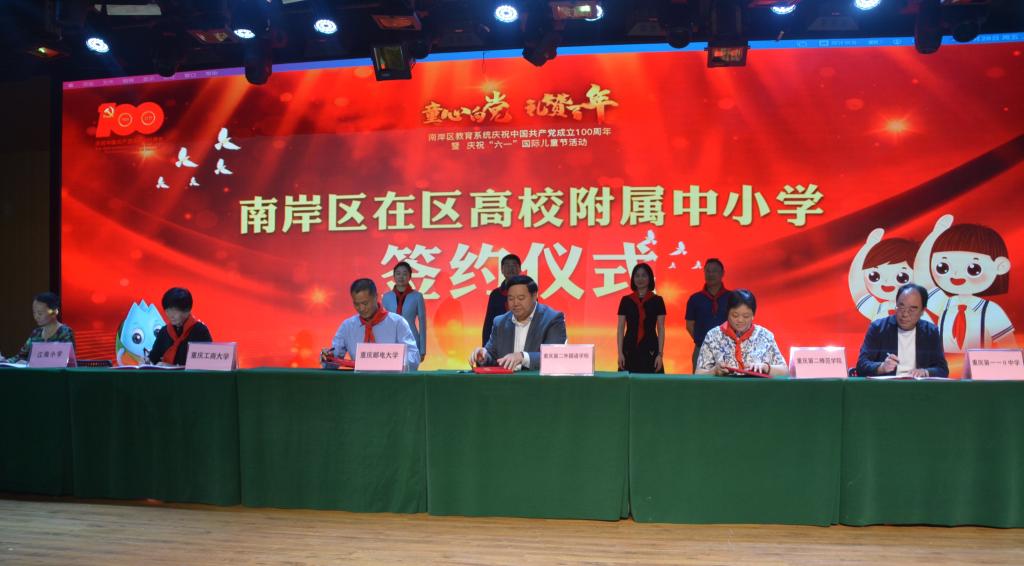 5月28日,南岸区教育系统庆祝中国共产党成立100周年暨庆祝“六一”国际儿童节活动在重庆人民(融侨)小学举行。南岸区区委区府主要领导、相关高校,我校党委副书记宋豫出席活动。区委、区政府相关部门、在区高校、各镇街领导及全区中小学的书记、校长,教师代表、家长代表以及我校国内合作发展处处长冯吉光参加了活动。