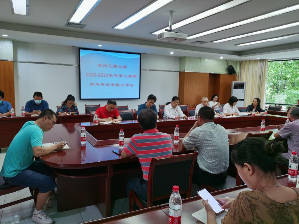6月22日下午,学校2020-2021学年第二学期期末考试专题工作会在厚德楼3020会议室召开。何勇平副校长出席会议。教务处处长骆东奇、副处长宋瑛、评估办公室主任曾晓松、学生处副处长尹建平,各学院教学副院长以及分管学生工作的副书记参加了会议。会议由教务处处长骆东奇主持。