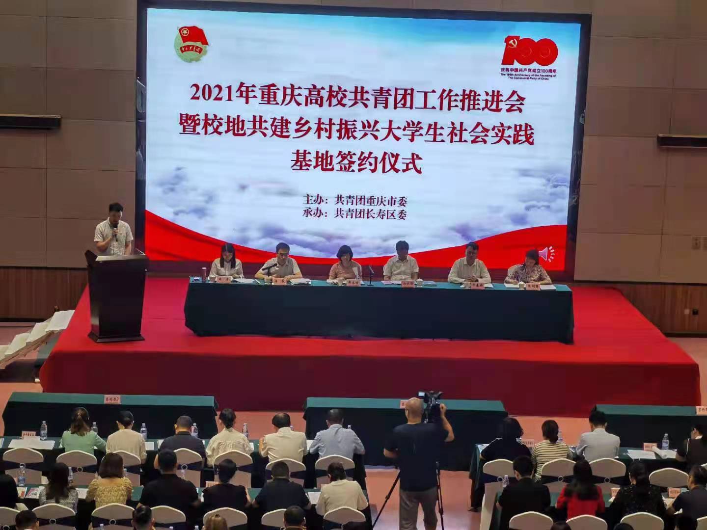 为深入学习贯彻习近平总书记关于青年工作的重要思想和关于“三农”工作的重要论述,全面落实党中央、市委和团中央关于乡村振兴战略工作部署,6月23日上午,重庆高校共青团校地共建乡村振兴大学生社会实践基地签约仪式在重庆市长寿区举行。团市委副书记黄永宜、长寿区副区长汤晓强、部分区县团组织负责人及全市高校团组织负责人参加本次签约仪式。我校团委书记杨娟、人工智能学院专职组织员杨勇出席签约仪式,并与市级重点帮扶乡镇忠县磨子乡签订共建协议。