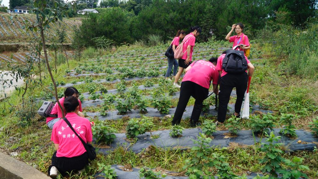 7月12日,经济学院乡村振兴社会实践团前往重庆市南川区黎香湖镇东湖村,对当地中药材种植基地调研考察。实践团成员在调研考察过程中了解到当地政府联合公司聘请专业地质勘查队对当地土质进行勘测,结合当地温度、降雨等自然条件,因地制宜,引进适合的品种种植。在中医药材种植田间,实践团发现当地在种植技术上采用“覆膜技术种植+高低套种+喷灌”,节约用水、节省劳动力的同时降低灌溉成本,并在一定程度上加强了中药材的呼吸作用、光合作用,还能增加产量。