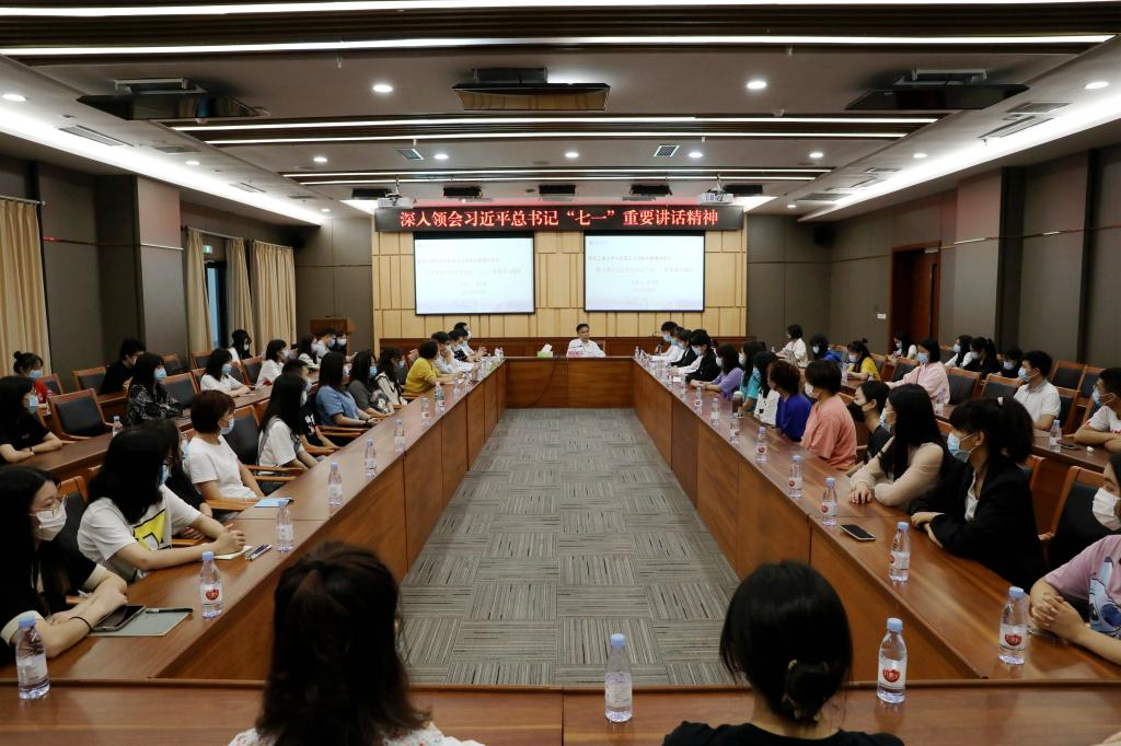 会上,马克思主义学院硕士研究生周鹏、王春连、任晶、郑鑫、薛佳婷、吴昌宏、唐颖等畅谈了学习习近平总书记“七一”重要讲话精神的心得。他们认为习近平总书记“七一”重要讲话高瞻远瞩,内涵丰富,是一篇马克思主义的光辉文献,是指引青年学生奋进新征程的科学纲领和行动指南。他们表示,要认真学习、深刻领会、扎实贯彻习近平总书记“七一”重要讲话精神,在全面建设社会主义现代化国家的新征程上,要脚踏实地,真抓实干,敢于担当,刻苦钻研;在实践中经风雨、见世面、长才干;要敢于拼搏、勇于奋斗,做走在时代前列的奋进者、开拓者、奉献者,为实现社会主义现代化强国不懈奋斗。