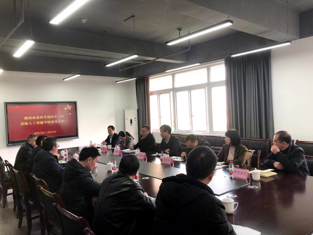 11月25日上午,校长孙芳城到人工智能学院调研指导工作。党政办、人事处、教务处、科研处、研究生院、财务处等职能部门负责人陪同调研。人工智能学院班子成员、专职组织员、系部主任、科级干部等参加了调研会。