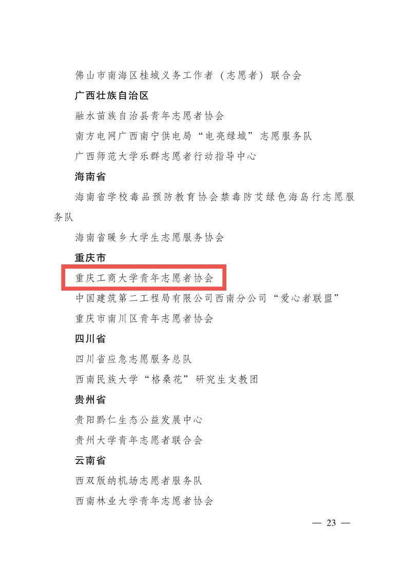 11月30日,共青团中央发布《关于第十三届中国青年志愿者优秀个人奖、组织奖、项目奖的决定》,万搏网页版_万搏(中国)官方在线登录青年志愿者协会获评第十三届“中国青年志愿者优秀组织奖”。该奖项是全国志愿服务类评选的最高荣誉,2021年全国共评选优秀组织奖100个,其中重庆市获奖3个,我校是唯一一个获奖高校。