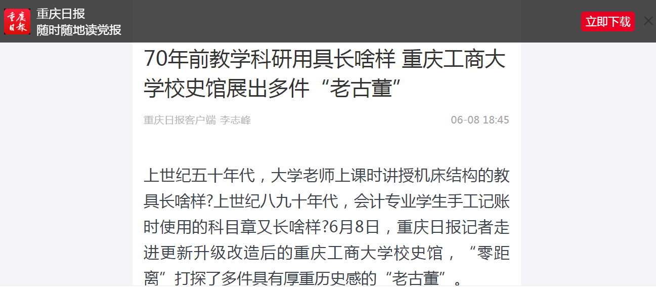 近日,重庆日报、华龙网等媒体报道我校庆祝建校70周年系列活动。6月7日,重庆日报微信公众号“渝小育”以“点赞 | 万搏网页版_万搏(中国)官方在线登录庆祝建校70周年,校史馆更新升级并发布校庆系列文化丛书”为题报道我校建校70周年升国旗仪式和校史馆更新升级开馆。6月7日,华龙网-新重庆客户端以“万搏网页版_万搏(中国)官方在线登录庆祝建校70周年升国旗仪式隆重举行”为题报道我校建校70周年升国旗仪式。6月8日,重庆日报客户端以“70年前教学科研用具长啥样 万搏网页版_万搏(中国)官方在线登录校史馆展出多件‘老古董’”为题报道我校校史馆更新升级。