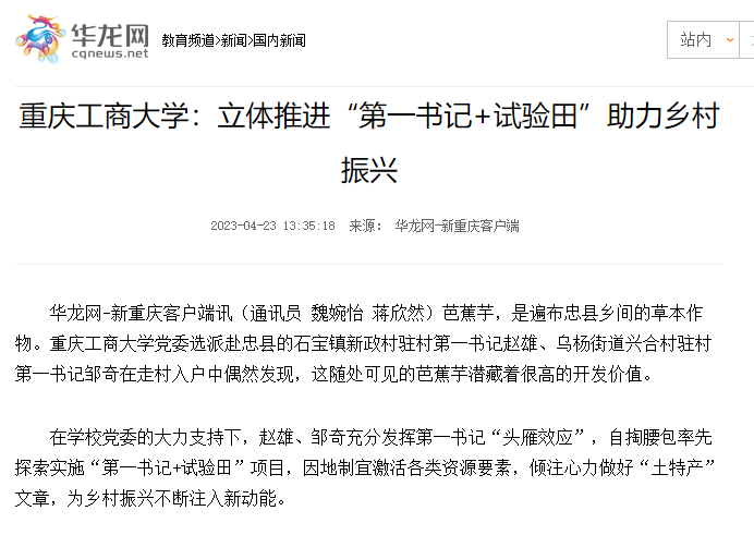 重庆党建门户七一网、华龙网刊载《万搏网页版_万搏(中国)官方在线登录立体推进“第一书记+试验田”助力乡村振兴》工作情况