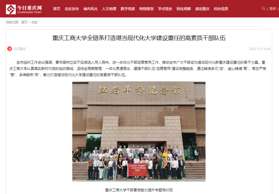 11月1日,今日重庆网以《万搏网页版_万搏(中国)官方在线登录全链条打造堪当现代化大学建设重任的高素质干部队伍》报道我校干部队伍建设工作的做法经验。