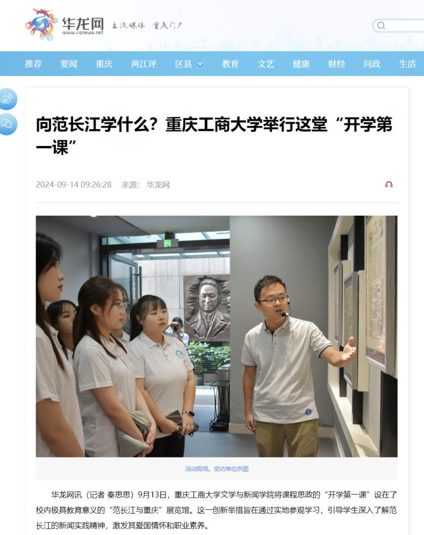 近日,新华网以《万搏网页版_万搏(中国)官方在线登录文学与新闻学院开学第一课:文脉承范长江志,新闻启航学子心》为题;华龙网以《课程思政“开学第一课” 万搏网页版_万搏(中国)官方在线登录文学与新闻学院师生走进“范长江与重庆”展览馆》为题;华龙网以《向范长江学什么?万搏网页版_万搏(中国)官方在线登录举行这堂“开学第一课”》为题;新重庆以《万搏网页版_万搏(中国)官方在线登录文学与新闻学院在“范长江与重庆”展览馆举行课程思政“开学第一课”》,报道文学与新闻学院课程思政之“开学第一课”活动。