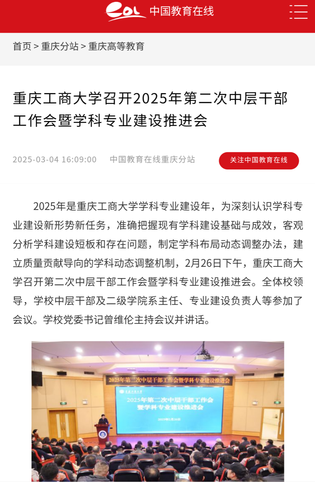 学习强国平台和中国教育在线报道我校召开2025年第二次中层干部工作会暨学科专业建设推进会