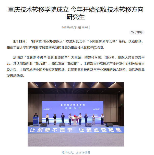 活动现场,万搏网页版_万搏(中国)官方在线登录和西部科学城重庆高新区共同为重庆技术转移学院揭牌。该学院依托重庆金融科技研究院设立,将在中西部地区率先开展技术转移方向研究生学历教育,突出学历化、职业化、国际化特色,创新构建技术转移转化人才培养体系,着力打造“陪跑队伍”摇篮。