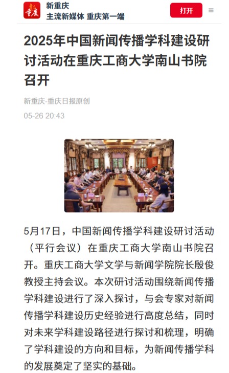 新重庆-重庆日报以《2025年中国新闻传播学科建设研讨活动在万搏网页版_万搏(中国)官方在线登录南山书院召开》为题对该活动进行报道。
