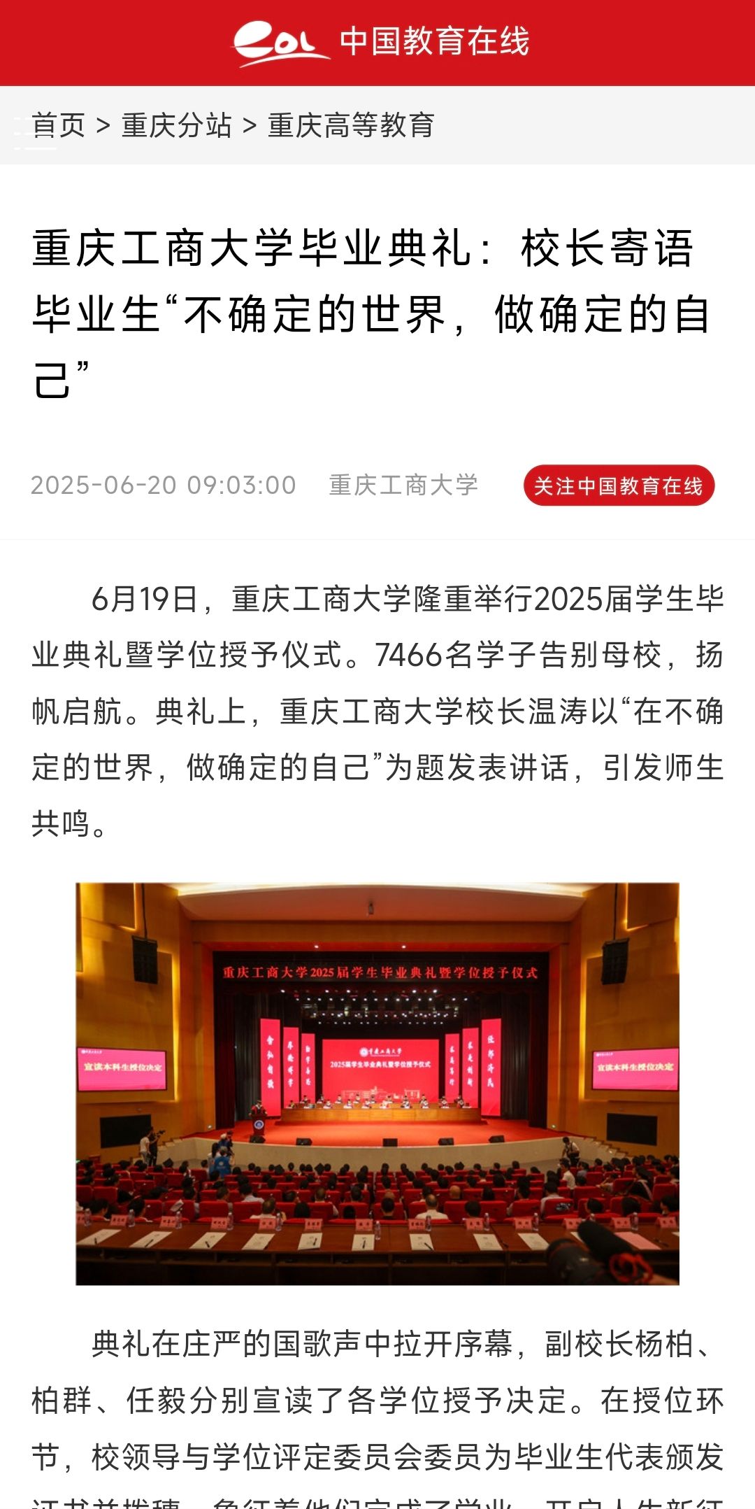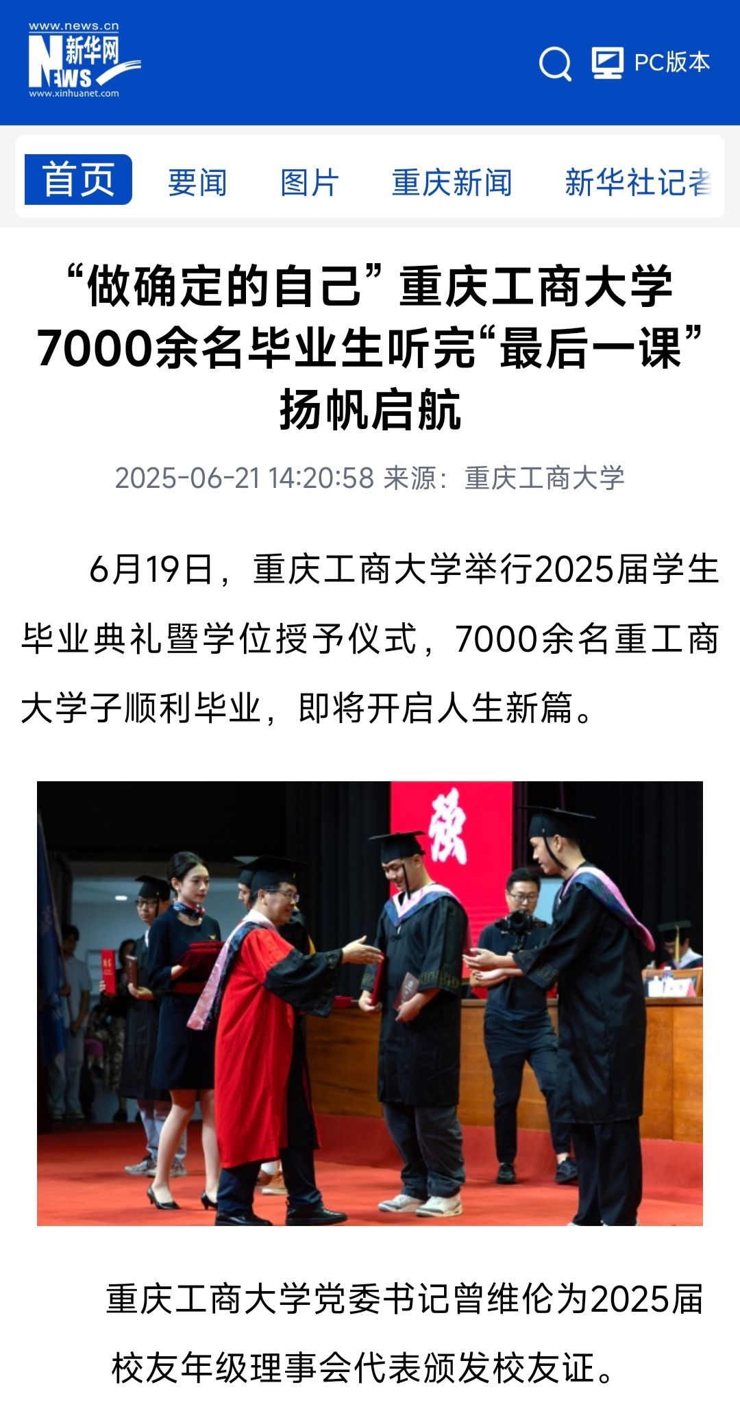 3.新重庆-重庆日报:我们为什么行远路?背包里要装哪些行囊?听听毕业典礼上校长们的叮嘱