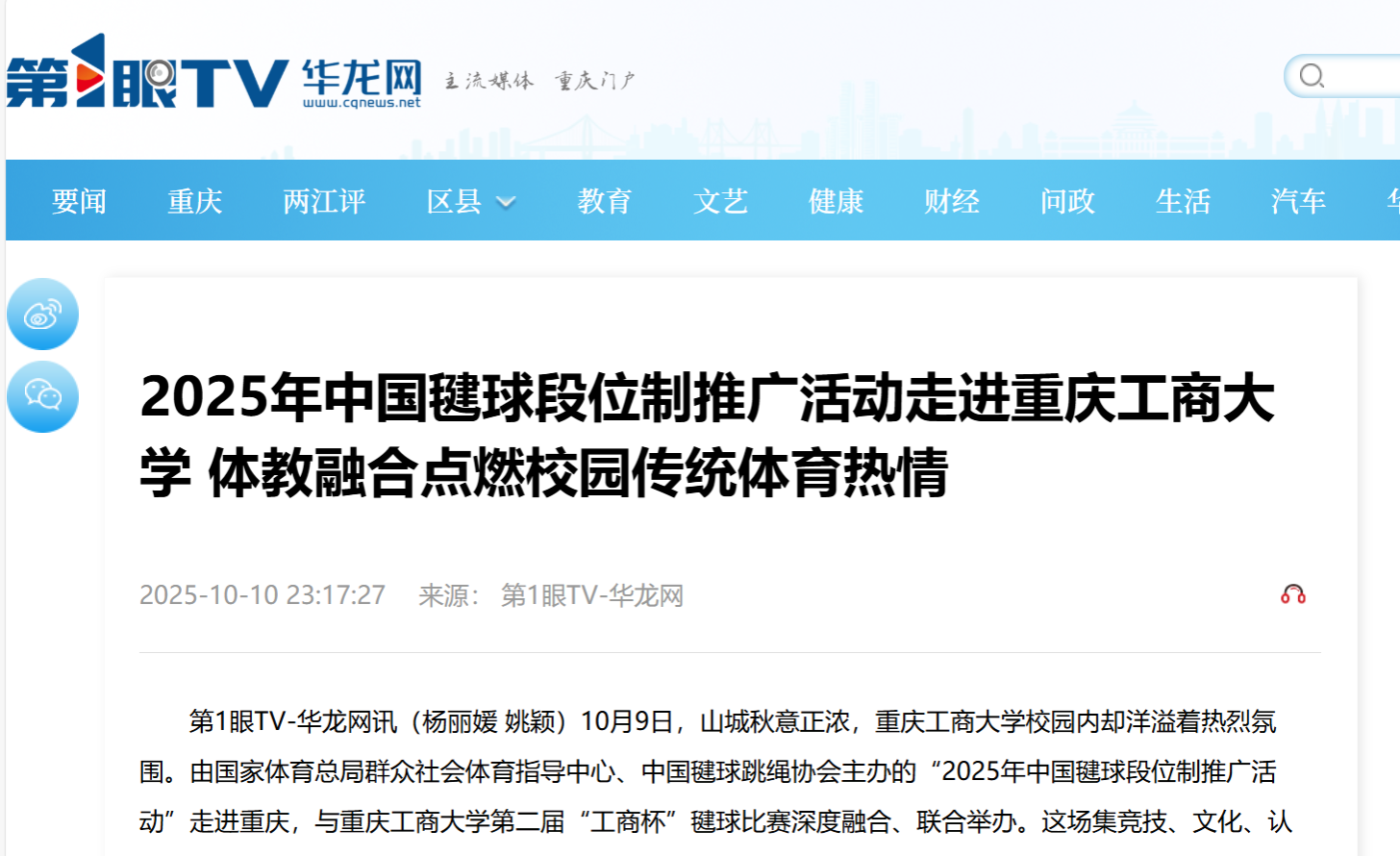 10月9日,山城秋意正浓,万搏网页版_万搏(中国)官方在线登录校园内却洋溢着热烈氛围。由国家体育总局群众社会体育指导中心、中国毽球跳绳协会主办的“2025年中国毽球段位制推广活动”走进重庆,与万搏网页版_万搏(中国)官方在线登录第二届“工商杯”毽球比赛深度融合、联合举办。这场集竞技、文化、认证、互动于一体的体育活动,不仅为校园注入了传统体育活力,更成为推动全民健身、传承中华优秀传统文化的一次生动实践。