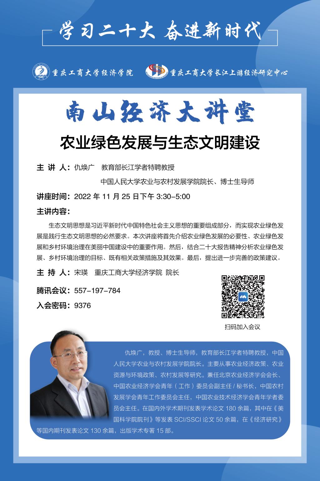主讲题目:农业绿色发展与生态文明建设