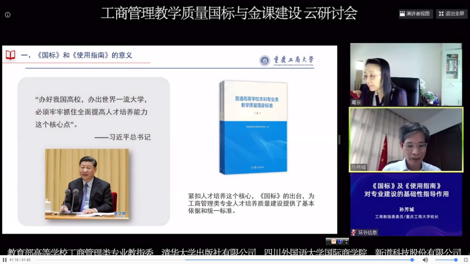 孙芳城校长参加工商管理教学质量国标与金课建设云研讨会
