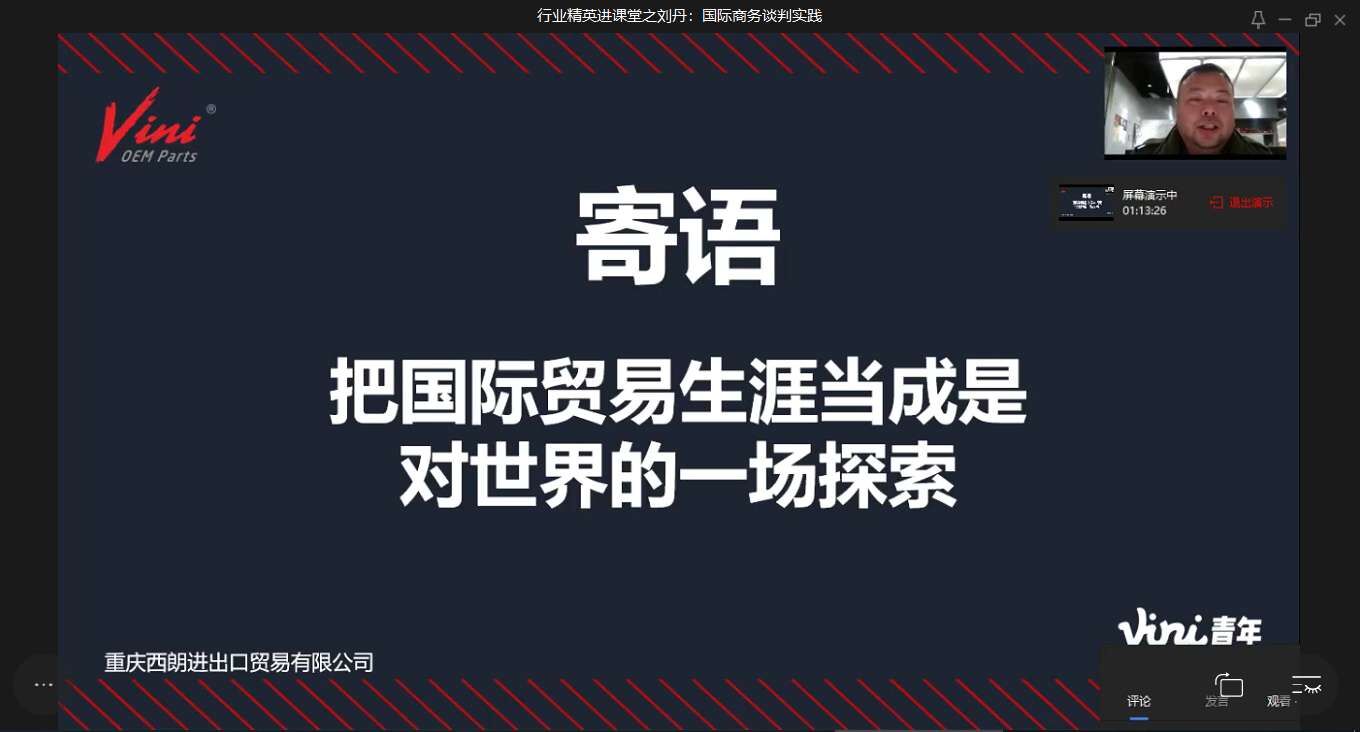 培育具有中国情怀、全球视野的中国特色社会主义经济学人才,引导学生树立正确世界观和人生观,正确理解和认识我国历史经验和当代实践所提出的理论命题和实际问题,是我校经济学类专业教育教学改革面临的重大使命。以世情国情民情教育为主线的“行业精英进课堂”活动,有效将思想政治教育与专业教育融合、显性教育与隐形教育相结合,学习中国理论、认识中国故事、倡导中国经验,潜移默化,立德树人,是课程思政的有效实现方式。本次活动结合了当前大家最为关心的疫情问题,深化了对中国各行各业现实问题的思考,让学生真正的“学以致用”。此外,行业专家们还为学生进行了价值引导,如重庆商社(集团)有限公司张泽军部长强调专业学习与综合素养的结合,寄往学生成为有情怀、敢担当、懂经营、会管理、能领导的卓越人才。重庆西朗进出口贸易有限公司刘丹总经理对“谈判的本质是取得信任, 而不是说服对方”进行阐述,勉励学生成为人生赢家。