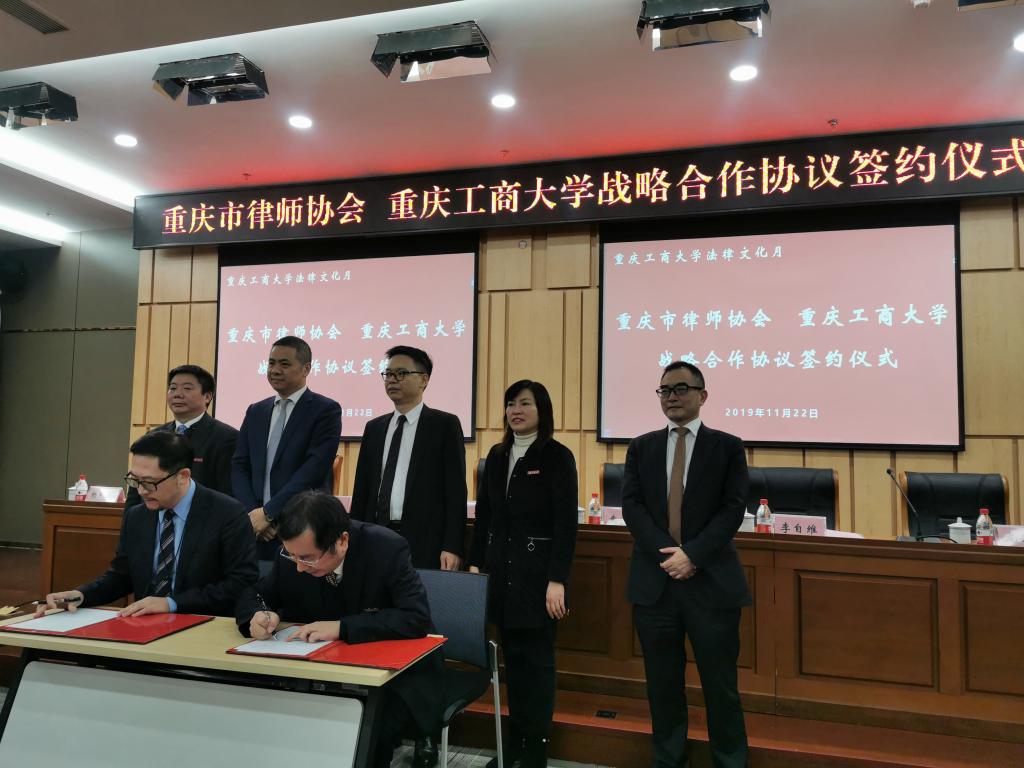 11月22日,我校与重庆市律师协会战略合作签约仪式在图书馆第一会议室举行,重庆市律师协会会长袁小彬,市司法局律师工作处处长、重庆市律师协会秘书长彭建军,重庆市律师协会副会长陈昊,我校副校长赵骅、法学院党总支书记李自维、院长杨和义,以及法学院师生代表出席了仪式。签约仪式由杨和义主持。