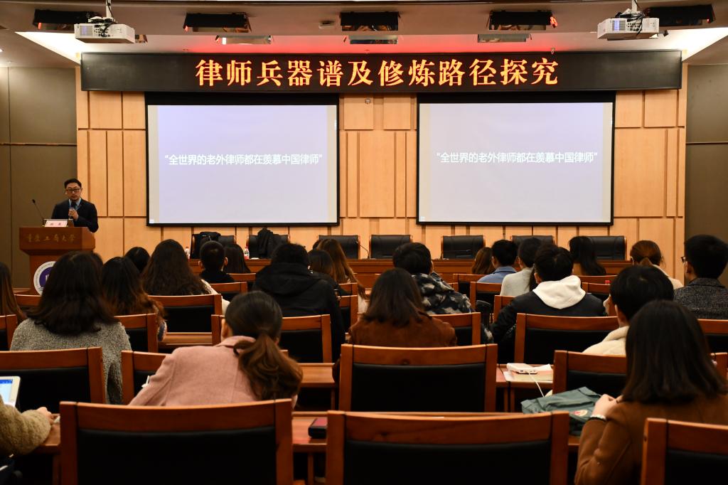 会后,双方就战略合作协议开展了第一项资源共享合作项目——陈昊为法学院学生作了以“律师兵器谱及修炼路径探究”为题的学术讲座。同时,市律协组织了57家律所在我校举办专场招聘会,为我校就业工作助力。我校将与重庆市律师协会精诚协作,合力划桨,共创法学教育和律师事业发展的美好未来。