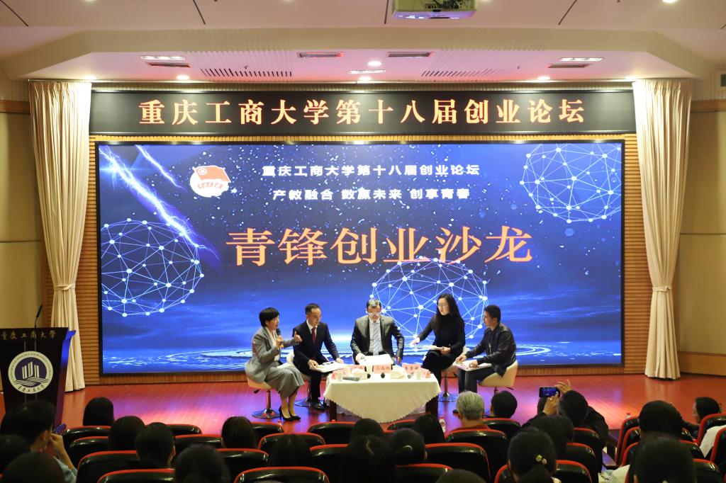 随后,创业论坛开启了第一项活动,以“产教融合、数赢未来、创享青春”为主题的“青锋创业沙龙”。美国密苏里大学访问学者、管理学院教师邓辅玉担任本次沙龙的主持人,在她的带领下,俞云峰、李雪娇、马尚鹏三位嘉宾分别与大家分享了自己的创业经历。俞云峰先生首先分享了自己艰难的创业史,提出创业不但要热爱,要有激情,而且重在坚持,不要轻言放弃;马尚鹏先生指出创业者要像狼一样有敏锐的嗅觉,要主动挖掘和发现机会,当机会降临时,要善于抓住机会;李雪娇女士深情告诫学弟学妹,创业路上充满挑战和困难,要敢于应对挑战,勇于直面困难,才能实现个人成长和创业目标;尹元福院长以创业教育者的视角,告诉大家空谈误国、实干兴邦,奋斗的青春是最美丽的,创业者要敢想、敢做、敢拼。最后,四位嘉宾以致创业者的一封信的分享了自己的创业心声,呼吁青年大学生要寻找目标,努力拼搏,为实现创业梦想而奋斗。