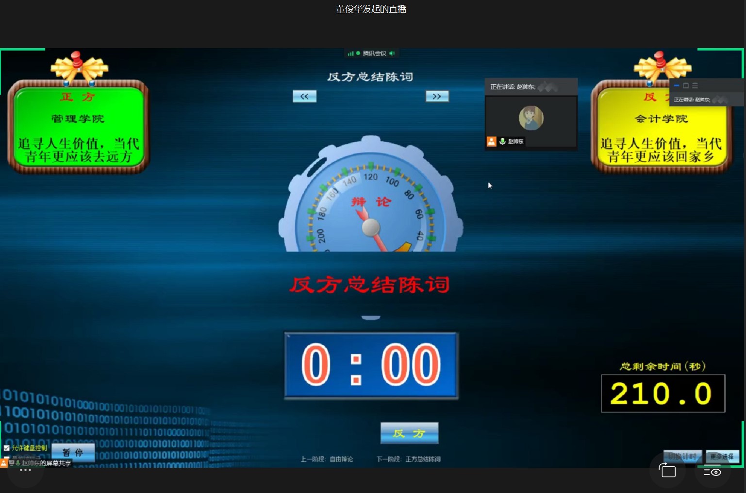 本次比赛双方辩手就“追寻人生价值,当代青年更应该去远方/回家乡”为辩题展开辩论。正方辩手以马克思的经历为例,说明“走向远方可让青年拓宽眼界,获得更多锻炼机会”。反方辩手则认为“家乡的竞争压力更小,更能提供与自身相契合的职位需求”,并以官方数据为依据,从房屋租金、岗位录用比率等方面说明“回家乡更有利于青年追寻人生价值”。在对辩环节,双方辩手们充分发挥自身优势特点,旁征博引、妙语连珠,深入分析论证己方观点,同时洞察对方举证论证中的薄弱环节,针锋相对的进行辩驳,不时抛出启发性观点,展示出科学思辨的青春风采,赢得评论区观众一片点赞。